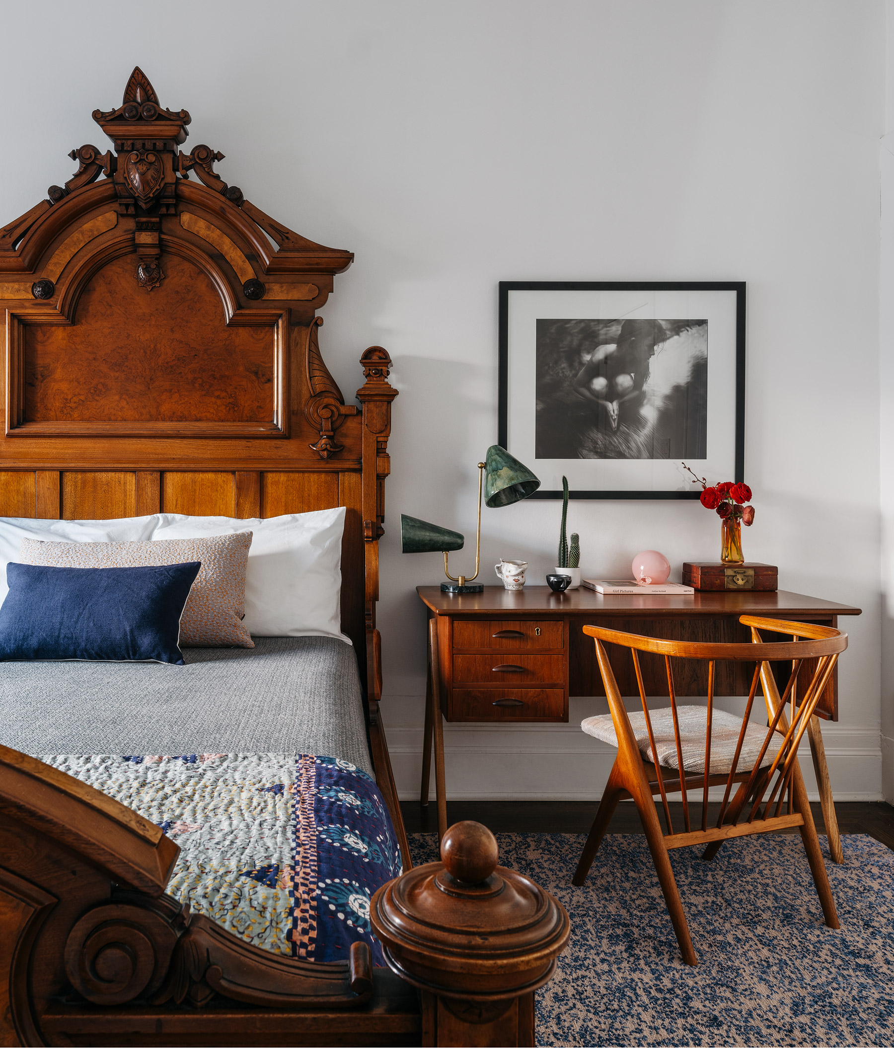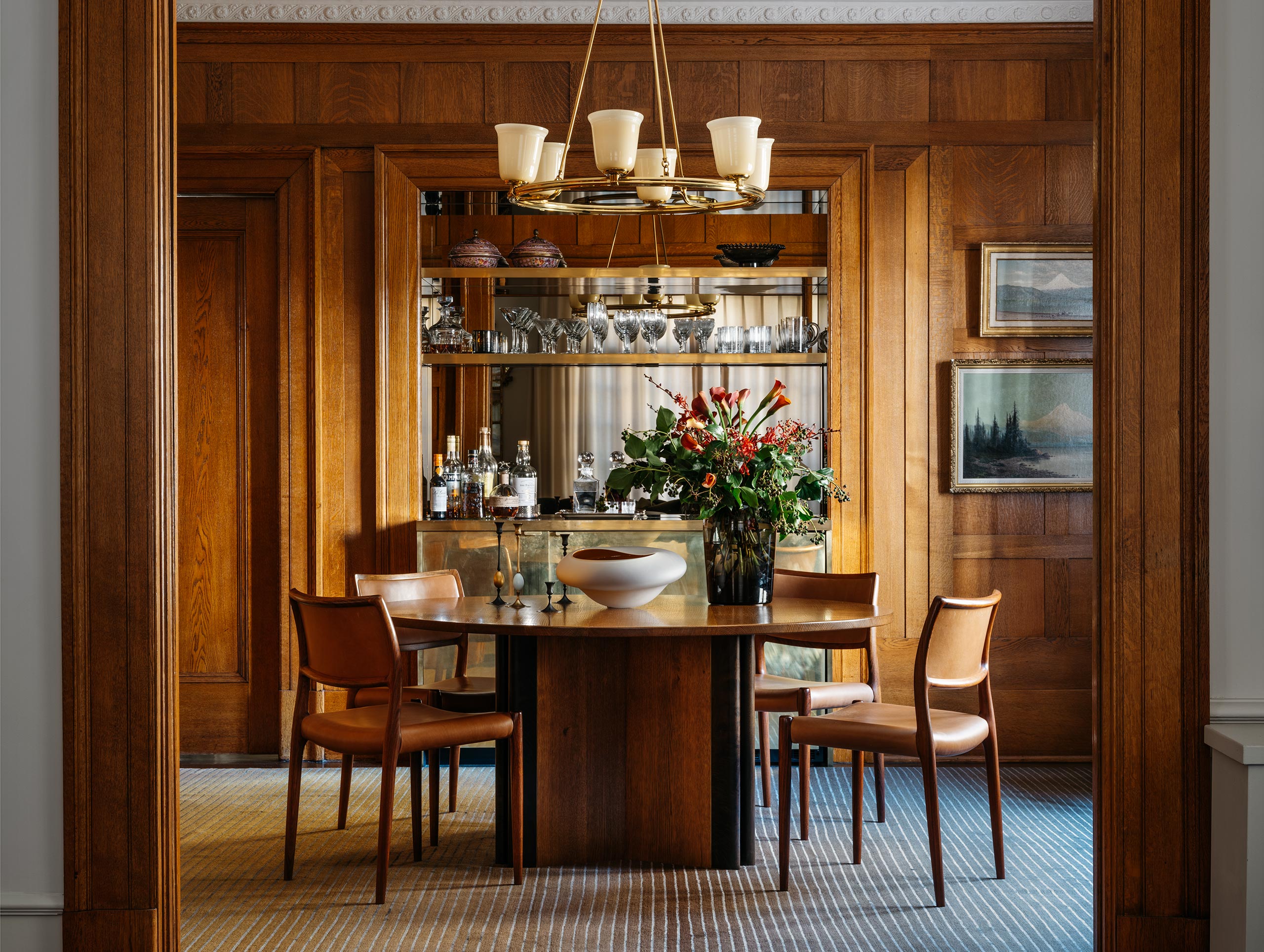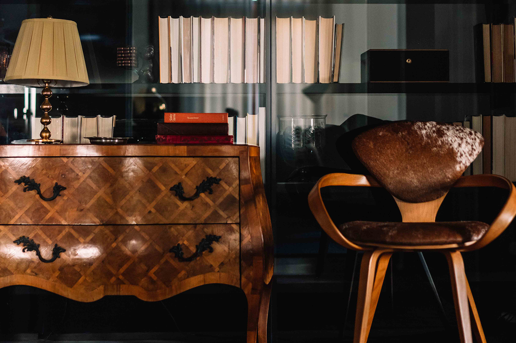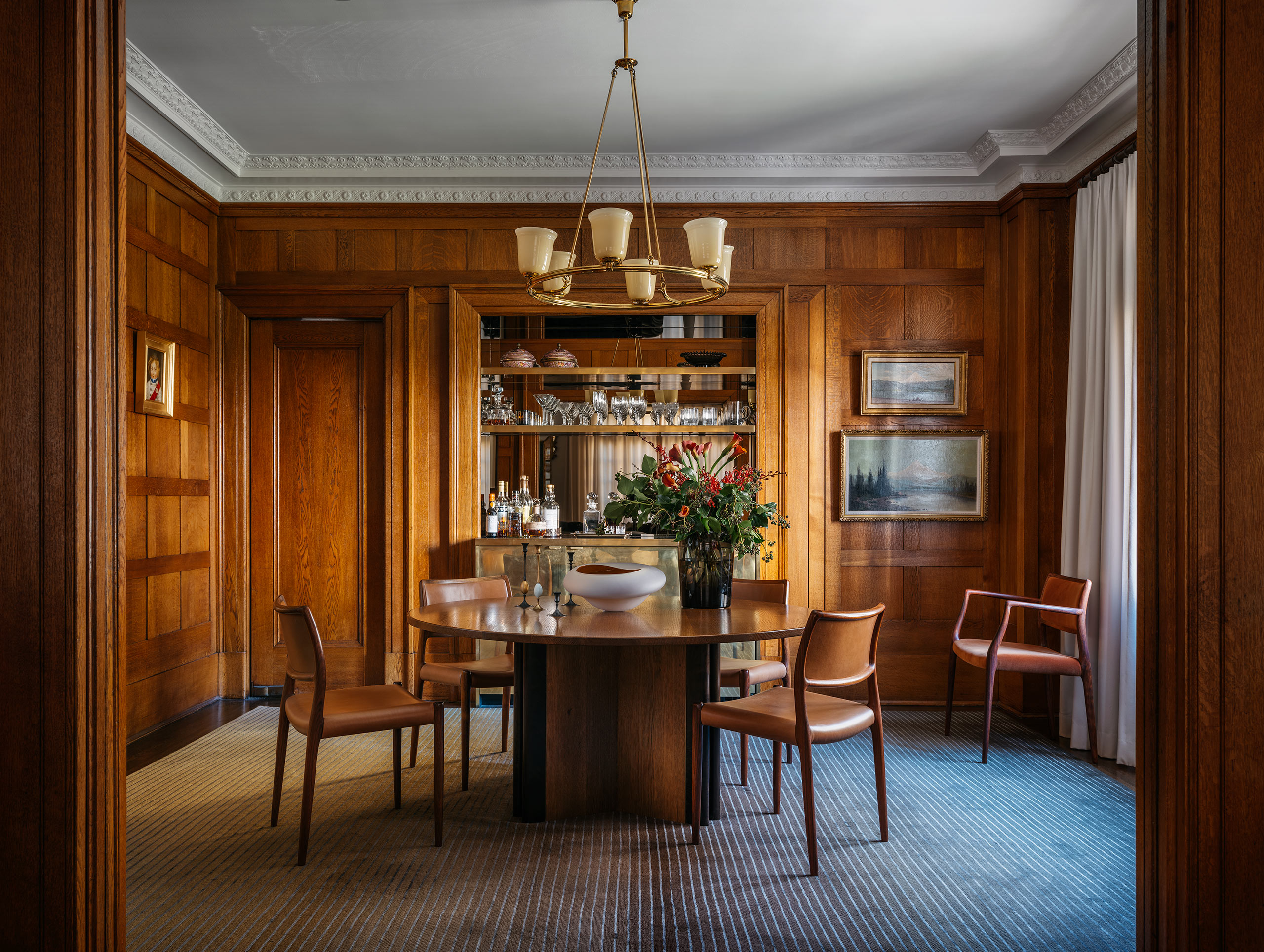 The residence features architecturally significant details throughout — gorgeous crown moldings, high ceilings, hardwood floors, a wood-paneled formal Dining Room, and Juliet balconies. JKA was engaged to infuse these grand rooms with our signature soulful blend of custom, contemporary, antique, and vintage pieces from around the world.
