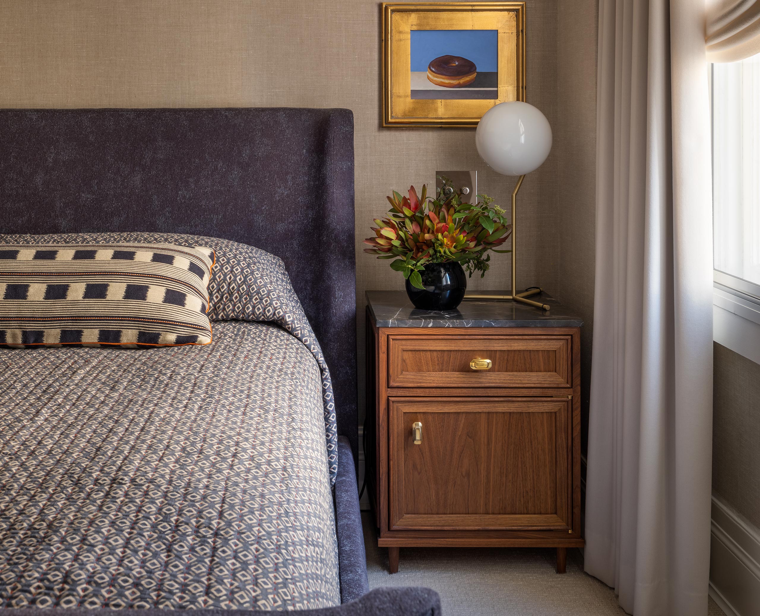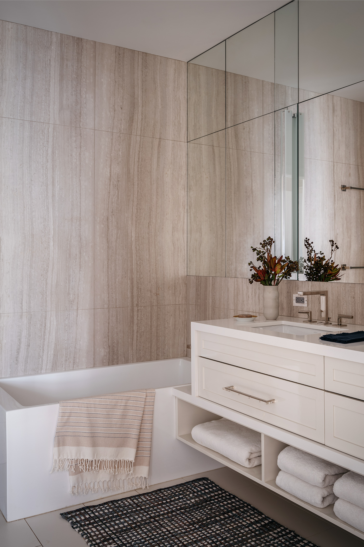 The result is a serenely luxurious layering of rich textures and subtle patterns conveying calmness and elegance within the heart of the city. We think it’s breathtaking, and our clients love their new home.