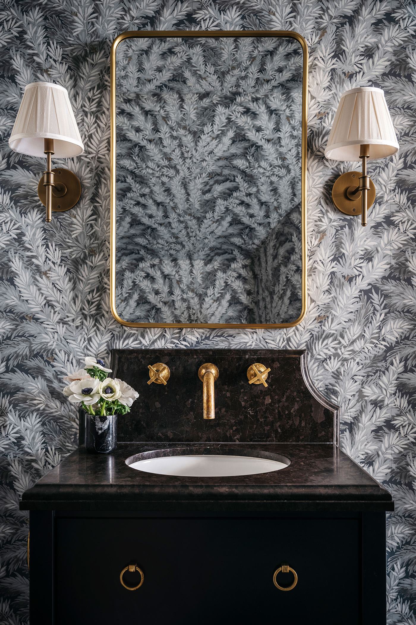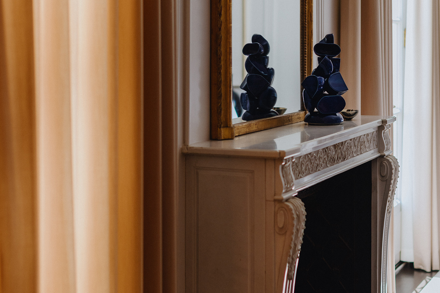 Our clients’ penchant for quiet, understated elegance and a neutral palette also informed the overall design direction for the home, with the occasional injection of an unexpected accent — such as the Mercurio wallpaper in the Boy’s Bedroom depicting voluminous blue clouds pierced by bright red Cupid’s arrows.