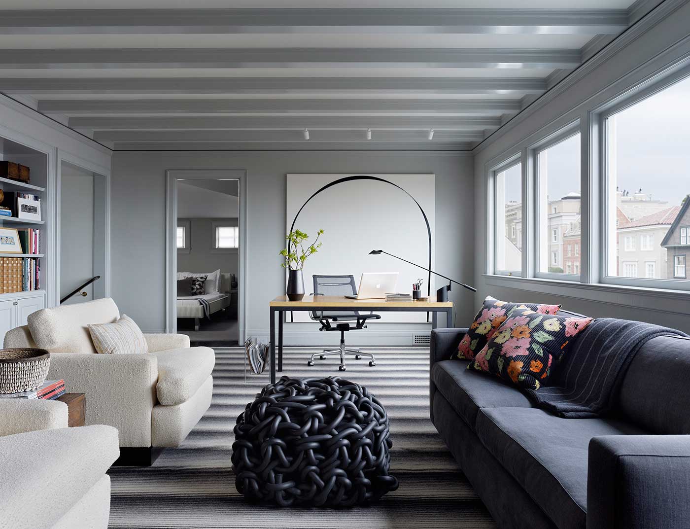 The homeowners are connoisseurs of modern art, and JKA created an environment that functions as a sumptuous but understated backdrop for their ever-expanding collection. A palette of soft-hued paint colors paired with furnishings that combine both comfort and personality, allow the artworks to take centerstage without sacrificing style.