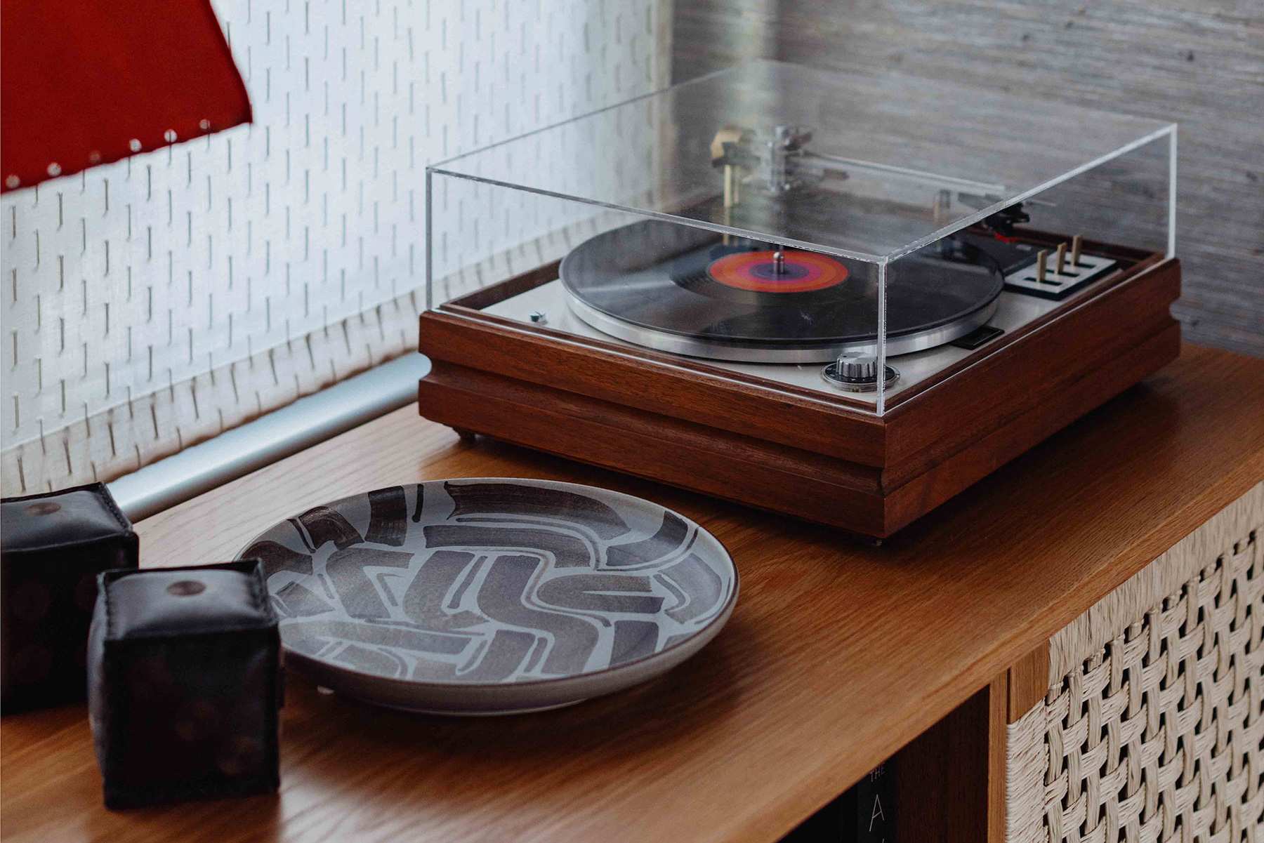 The soulful yet playful mood of the space was further enhanced by an exciting array of art, and a JKA-curated soundscape emanating from the turntable. We welcomed visitors to have a seat on the sumptuous curved sofa, to relax, and get lost in the landscapes of the mind. (We also met hundreds of people and engaged in many lively conversations with visitors & colleagues around our show-stopping custom bar.)